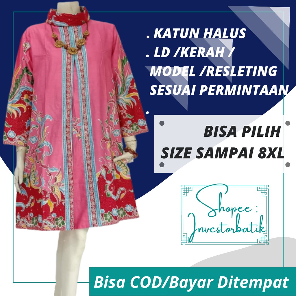 Name: Atasan Batik Tunik Dress Kerja Wanita Modern Lengan Panjang Katun Berkwalitas Size Ukuran Jumbo