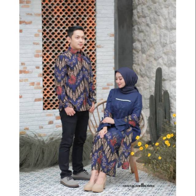 Name: Sarimbit Tunik Batik Set Selendang Couple 162 Batik Tunik Tile Mutiara Sarimbit Batik Brukat Navy